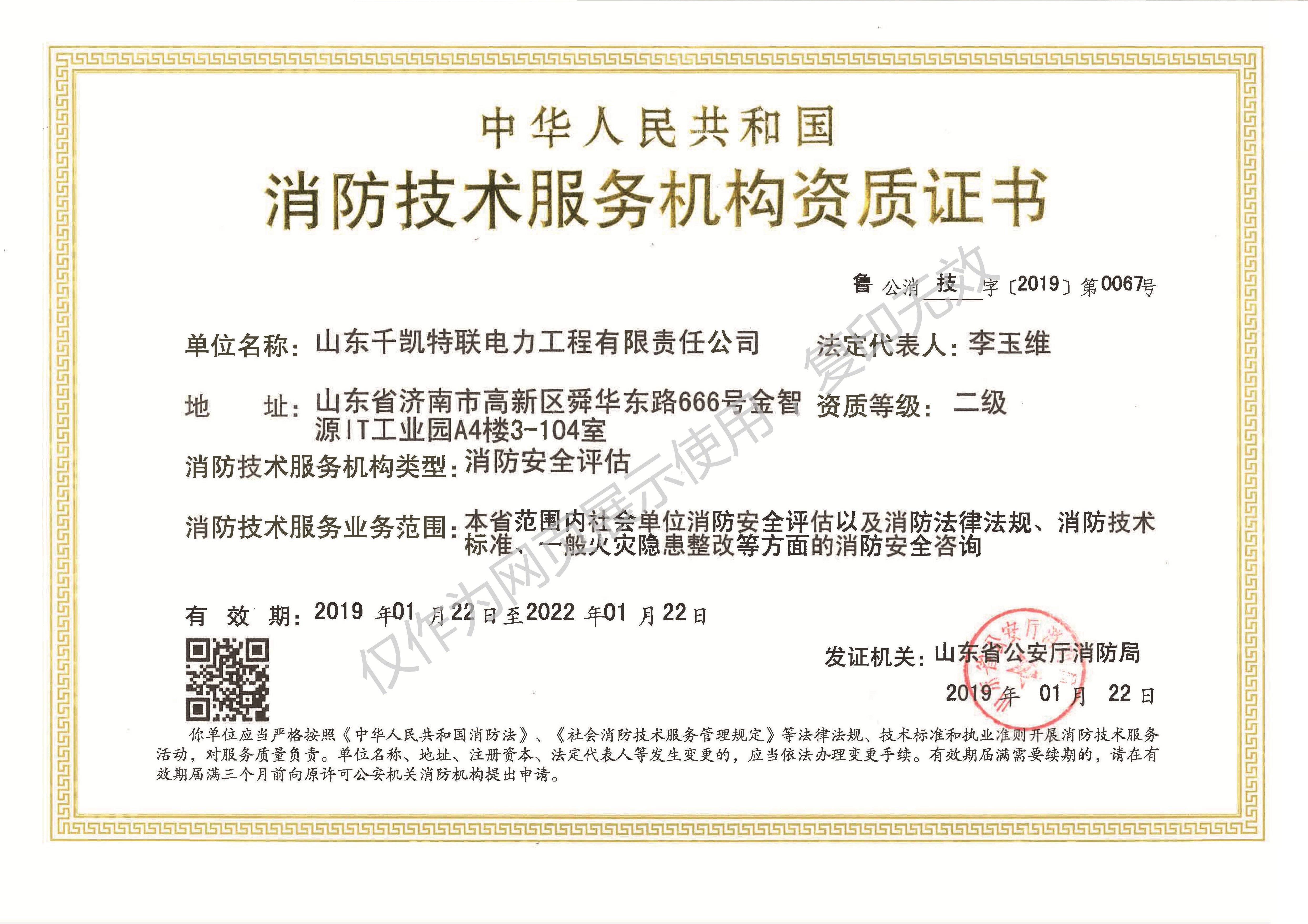 消防技術(shù)服務(wù)機(jī)構(gòu)資質(zhì)二級(jí)證書