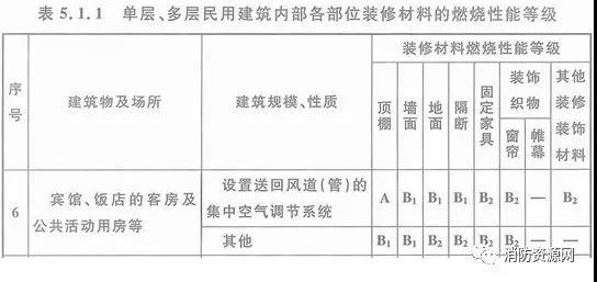 一、單、多層旅館建筑內(nèi)部各部位裝修材料的燃燒性能等級,不應低于《建筑內(nèi)部裝修設計防火規(guī)范》5.1.1規(guī)定: