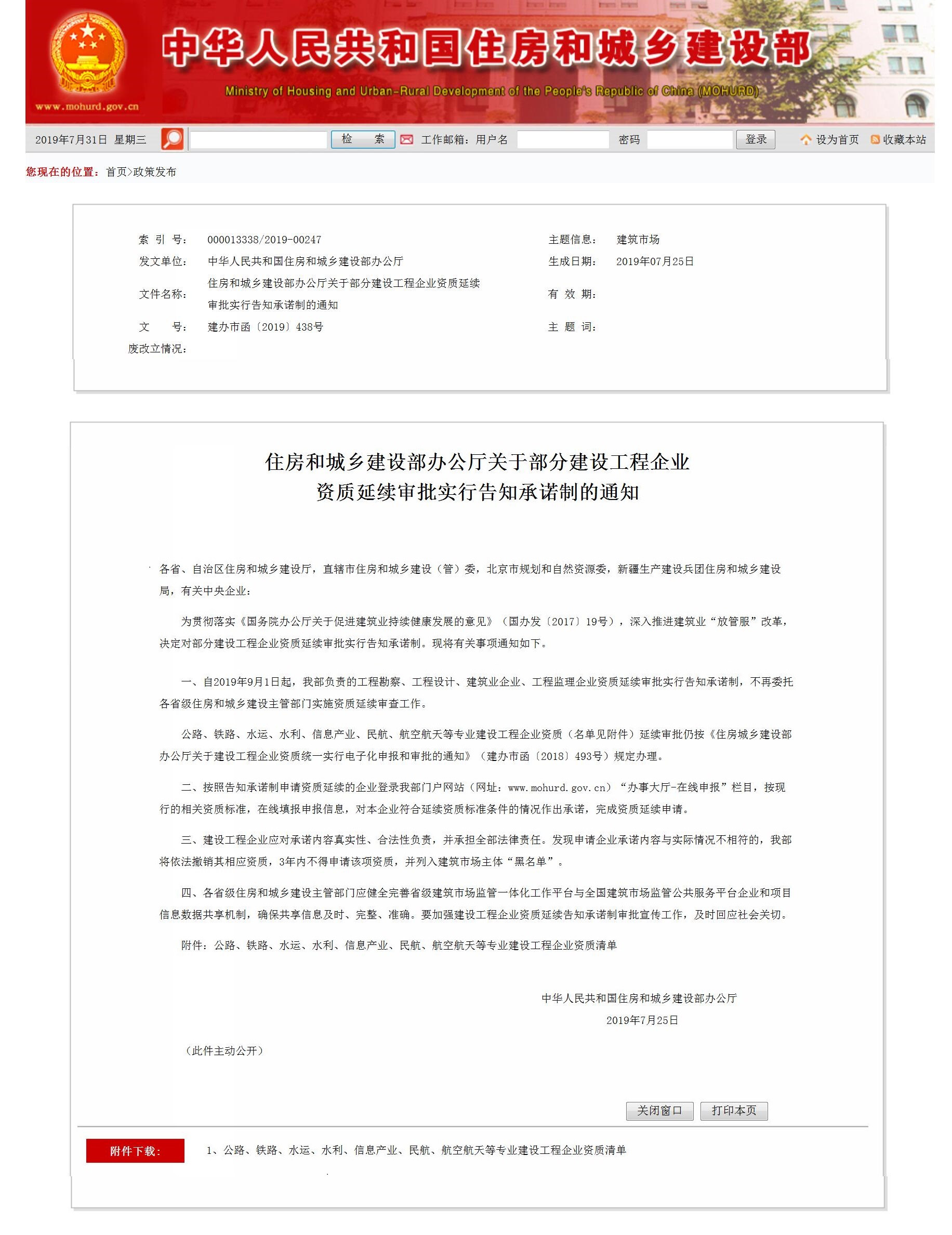 住房和城鄉(xiāng)建設(shè)部辦公廳關(guān)于部分建設(shè)工程企業(yè) 資質(zhì)延續(xù)審批實(shí)行告知承諾制的通知