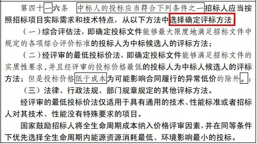 此外,《評標委員會和評標方法暫行規(guī)定》第二十九條也明確規(guī)定:“評標方法包括經評審的最低投標價法、綜合評估法或者法律、行政法規(guī)允許的其他評標方法?!?/span>