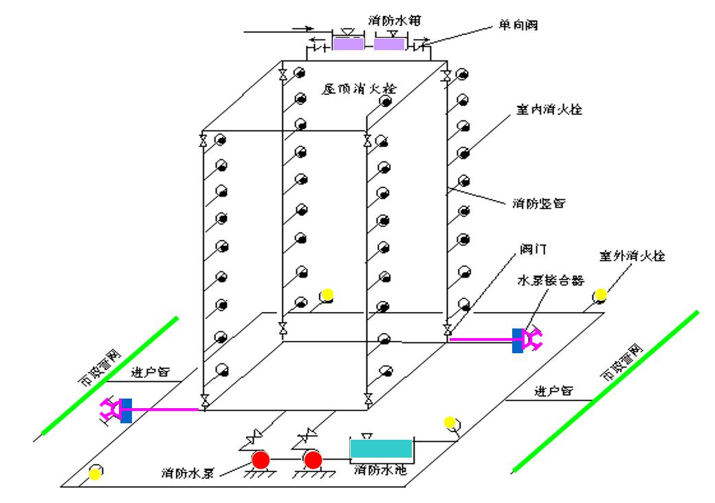 注:建筑高度不大于27m的住宅建筑,設(shè)置室內(nèi)消火栓系統(tǒng)確有困難時,可只設(shè)置干式消防豎管和不帶消火栓箱的DN65的室內(nèi)消火栓。